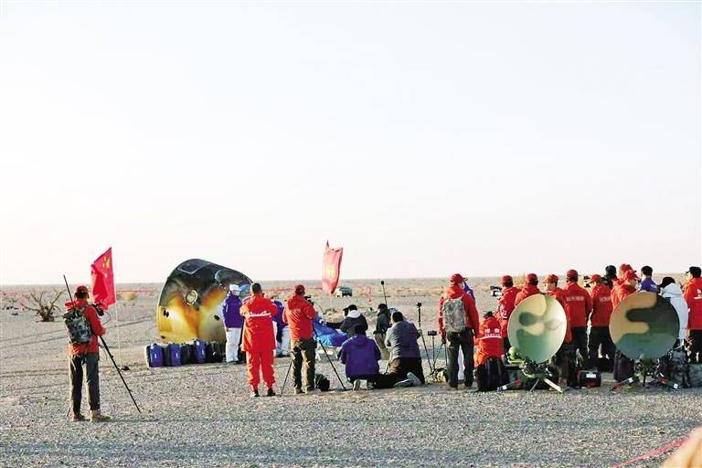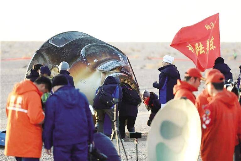 11月14日,载着神舟二十号航天员乘组的神舟二十一号载人飞船返回舱在额济纳东风着陆场成功着陆。