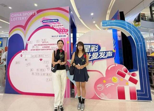 作为体育强国季的系列活动之一,本次主题活动巧妙将七夕佳节的浪漫氛围与中国体育彩票的公益属性相结合。活动现场特别设置的“爱心打卡墙”成为最受欢迎的网红点,少男少女们手持趣味体彩手举牌合影留念,记录下别样的浪漫瞬间。活动方精心准备的777朵玫瑰花免费向现场女士发放,寓意着幸运与祝福,排起的长龙成为现场一道温馨的风景线。