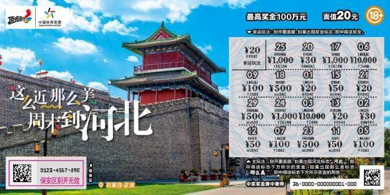 今年正值京津冀协同发展上升为国家战略十周年,又恰逢中国体育彩票发行三十周年,在国家体育总局提出“跟着赛事去旅行”,河北省委省政府打造“这么近,那么美,周末到河北”的背景下,河北地方特色即开型体育彩票于2023年9月开始设计研发。在财政部、国家体育总局的大力支持下,总局体彩中心的积极推动下,历经票面设计、奖级研发、申报审批等多个环节,历时16个月,地方票于今日(15日)上市首发。