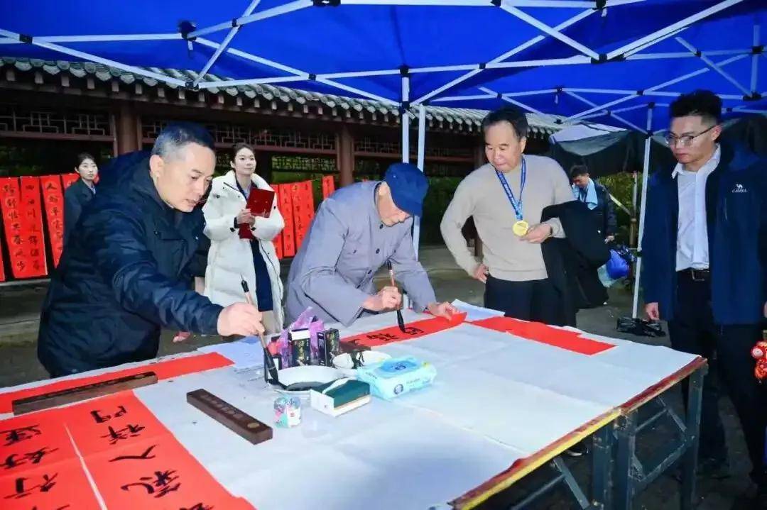 在特色集市现场,设有金凤糖画、“非遗”手作、九凤梨膏、三耳火锅等琳琅满目的特色摊位,吸引众多游客驻足体验选购。更有书法家现场挥春,笔走龙蛇间洋溢浓浓年味。辖区多家商户也借势推出系列优惠,为文旅消费加码助力。
