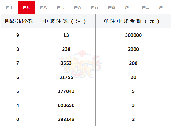 根据数据检索,中奖彩票为20元10码选九自选复式票,中得1注选九中九、9注选九中八,喜获奖金318000元。