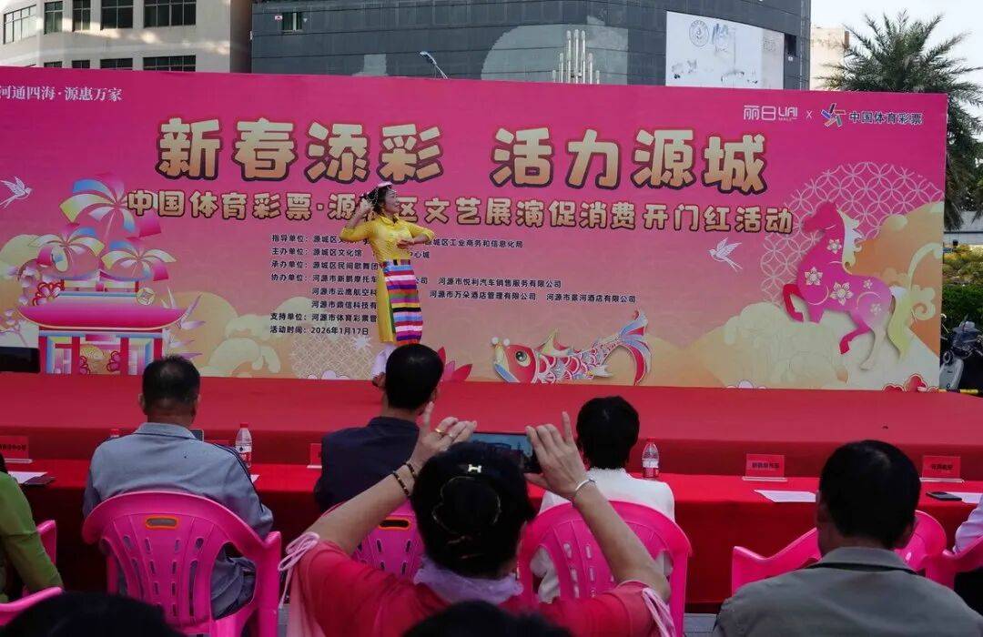 近日,由广东河源体彩支持的“新春添彩 活力源城——中国体育彩票·河源市源城区文艺展演促消费开门红”活动,在河源市区丽日中心城精彩上演。这场充满年味与活力的文艺盛宴,不仅为当地市民带来了视听享受,更点燃了新春消费热潮,让源城区的街头洋溢着浓浓的节日氛围。