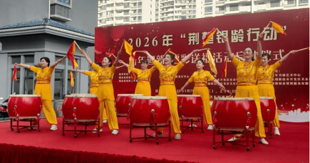 1月7日,湖北省武汉市东湖高新区关东街韵湖社区广场热闹非凡,一支精气神十足的老年腰鼓队,以节奏激昂的《赛马》,拉开了2026年“‘荆楚银龄行动’新年迎新·福彩送福”活动启动仪式的序幕。