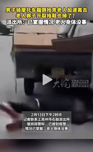 这事儿发生在广东茂名高州石鼓镇,光听地名大家可能觉得陌生,但看完事情经过,保证你心里能堵上一整天。据网友爆料和官方通报,事情大概发生在2月12日,就在镇上一家银行门口。那个老人家,平时就靠捡点废品换口饭吃,背个蛇皮袋子,在街上是那种毫无存在感的可怜人。结果那天,他就是安安静静地走在路边,突然,一辆粤K牌照的摩托车像幽灵一样贴上去,后座那个男的伸腿就是一脚,那种狠劲儿,就像踹一个沙包。老人当场就扑倒在地,手里捡的破烂撒了一地,整个人趴在人家三轮车后面,裤子的那儿都蹭烂了,露出了棉絮,一只拖鞋甩出去老远。